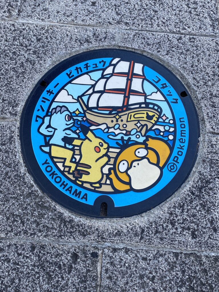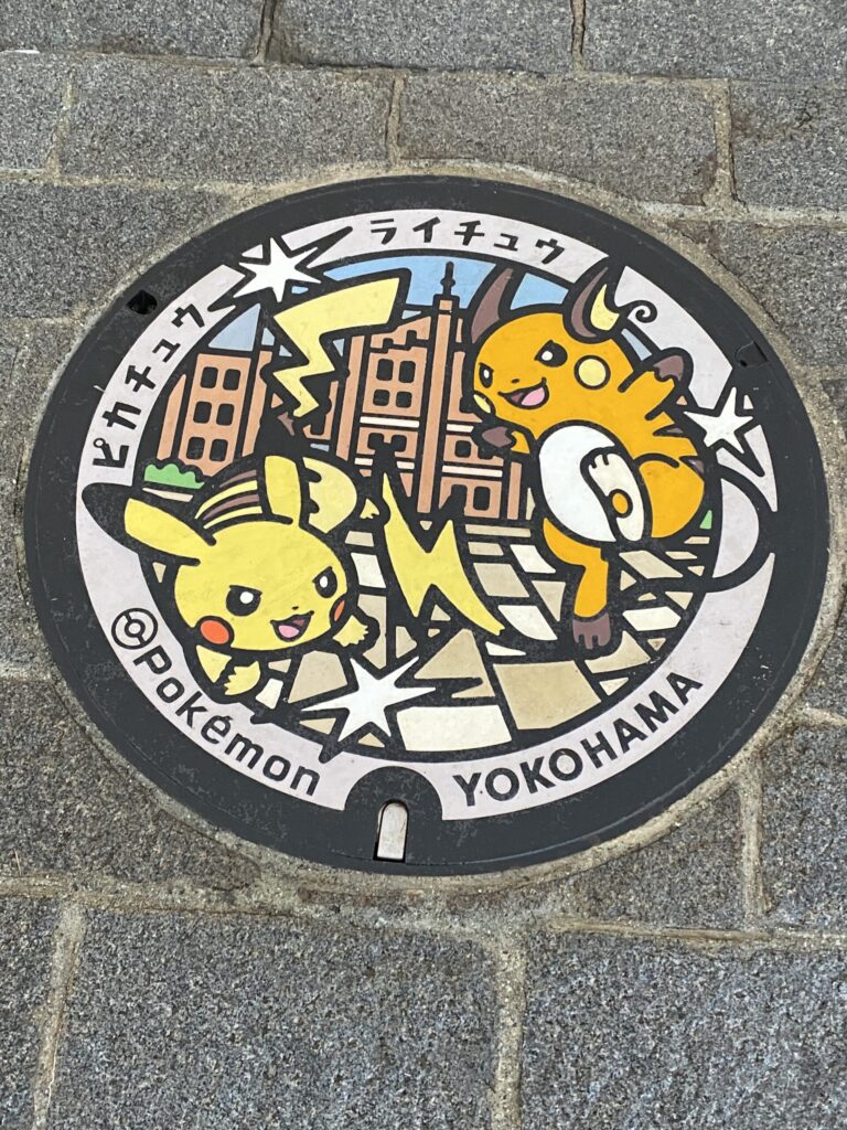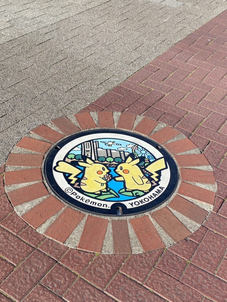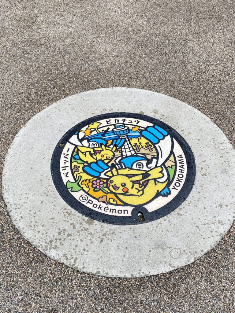 臨港パークを歩いていると、ポケモンのマンホールを見つけました。