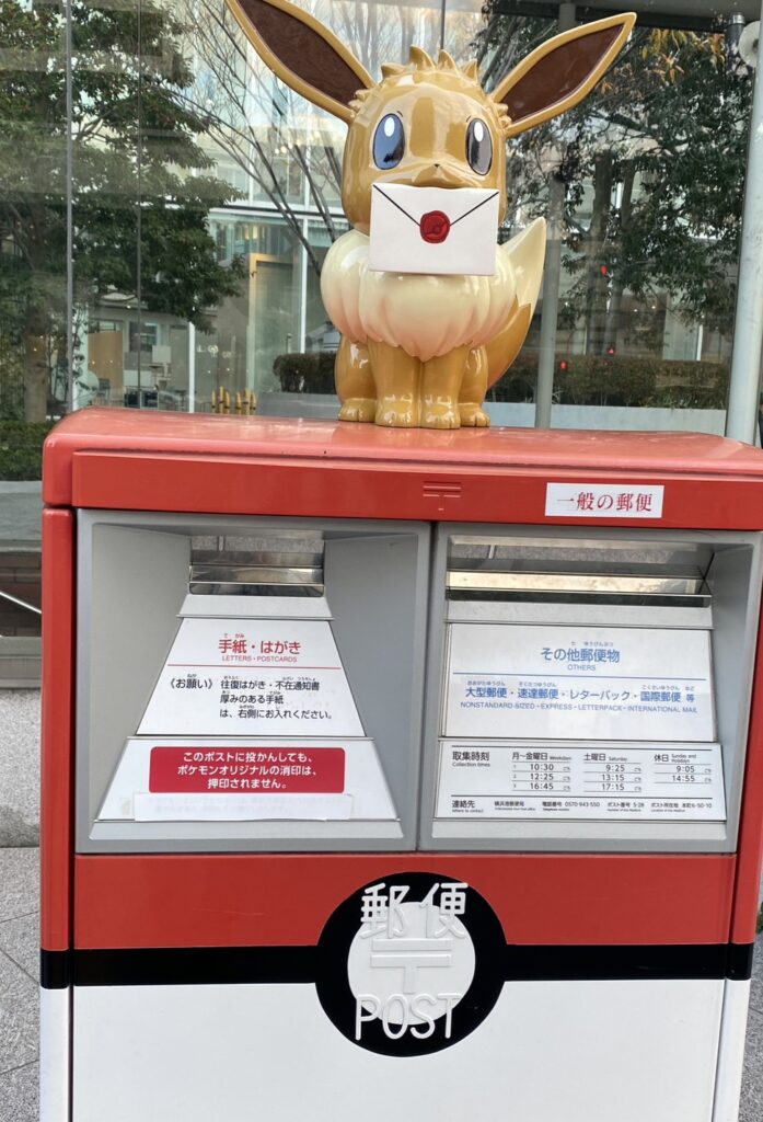 ポストがポケモンボールの形になっていて、手紙を持っている姿がとても可愛らしいデザインです。