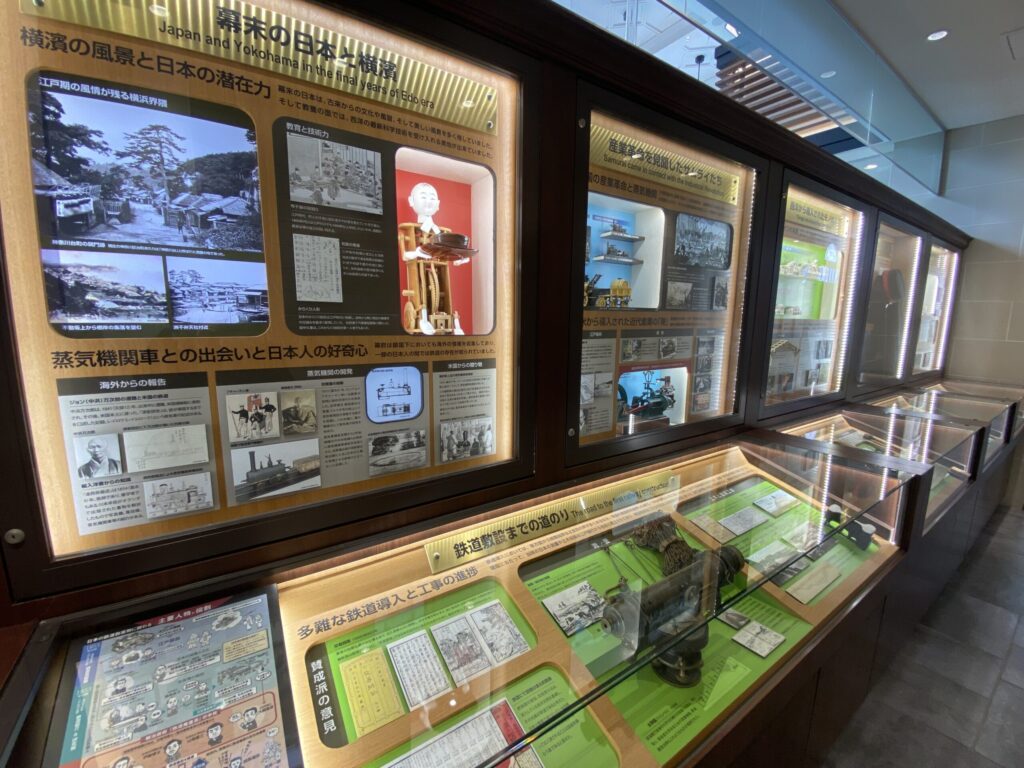 사쿠라기초가 초대 요코하마역이었기 때문에, 개업 당시 실제로 운행되던 110형 증기 기관차를 재현한 전시를 관람할 수 있습니다. 정기적으로 기관차 소리도 흘러나왔습니다.