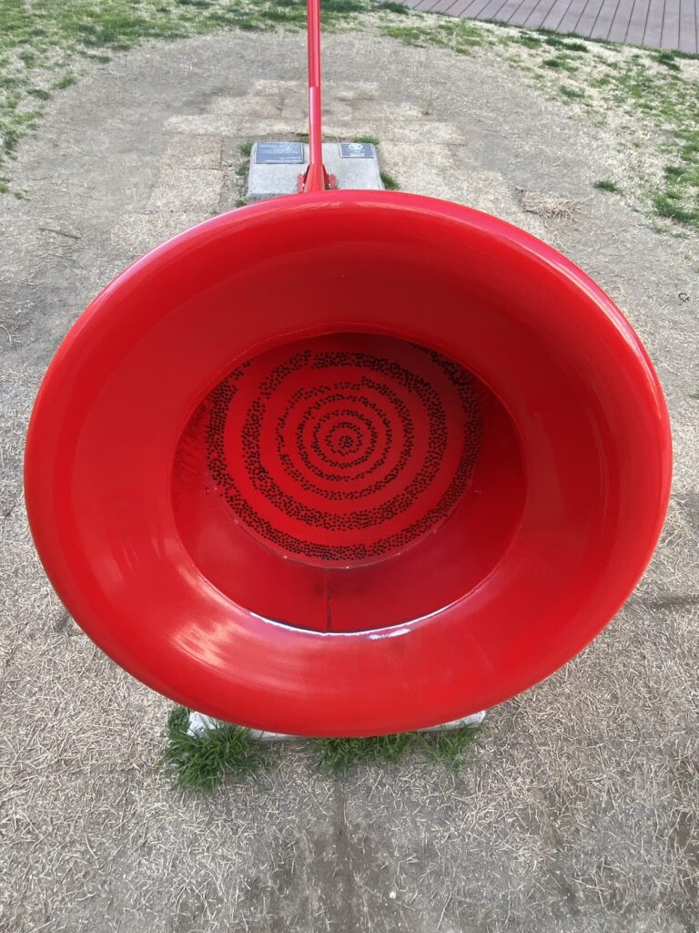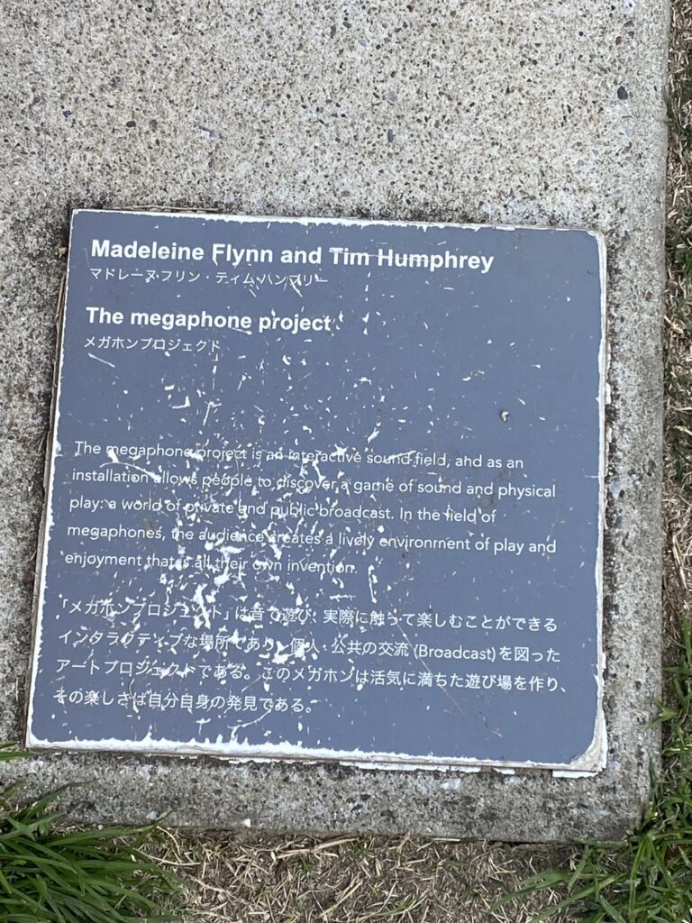 설명을 보니 실제로 만지고 즐길 수 있다고 해서, 시험삼아 소리를 내보니 작은 소리에도 맑게 울려서 잘 들렸습니다. 가까이 가지 않으면 놀 수 있는 것인지 알 수 없어서, 산책 중에 발견하고 뜻밖에 즐거운 체험이 되었습니다.