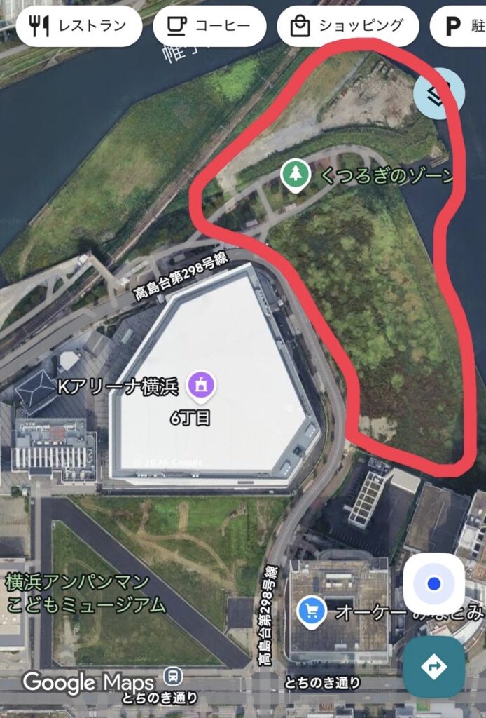 요코하마역 쪽에서 걸어오는 사람이 많은 것 같고, 토치노키 거리에서 앙팡맨 뮤지엄이나 K 아레나 쪽으로 향하는 사람들의 흐름이 생겨 있었습니다.